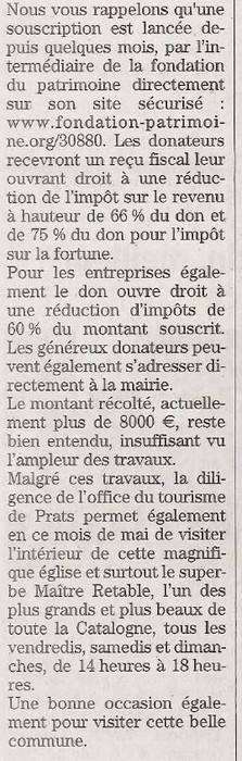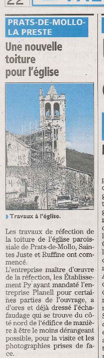 Une nouvelle toiture pour l'eglise de PRATS DE MOLLO LA PRESTE